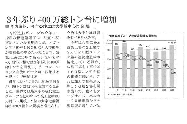 【新闻】今冶造船今年1-12月竣工了61艘大型船